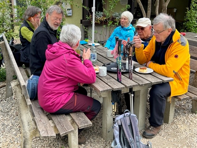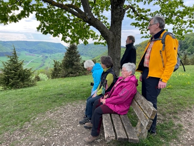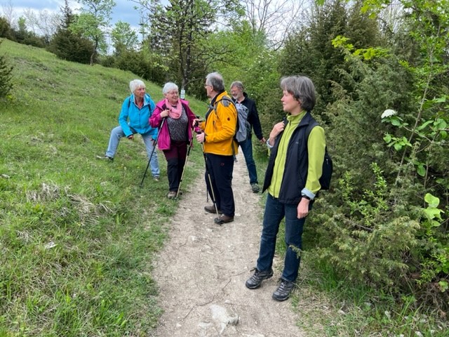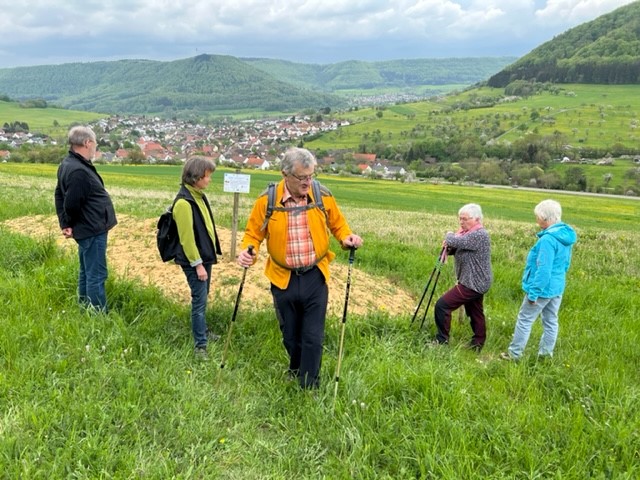 Am 26.05.22 um 7.00 Uhr morgens war es wieder soweit: die sportliche Otto Kast Gedächtniswanderung der OG Berghülen startete bei bestem Wetter pünktlich um 7.00 am Gasthaus Ochsen in Berghülen. Über 30 Wanderer, darunter 4 Teilnehmer aus Seißen, folgten dem Wanderführer Hansjörg Dick mit dem Motto: Im Kreis durch den nördlichen Alb-Donau-Kreis von Berghülen über die Gemarkung Asch hinunter nach Lautern, von dort vorbei am Spatzennest zur Vesper kurz vor Weidach. Dort wartete die APE schwerbeladen mit Brezen, die ziemlich schnell vernichtet waren. Weiter gings hinunter ins Kiesental nach Bollingen und über die A8 Autobahnbrücke weiter nach Temmenhausen zum Mittagessen in den Gasthof Berg. So gestärkt wurde das letzte Drittel in Angriff genommen: über eine Wildbrücke wurde die Autobahn Richtung Westen gequert und alsbald fanden wir uns im berühmt berüchtigten Hagsbuch wieder – und siehe da, auch diesmal machte er seinem Ruf alle Ehre, das Bussle musste gesucht und gefunden werden, und ein paar Wanderer tauchten gar erst am Kuhberg wieder auf. Nach einer letzten Rast beim Schützenheim am Kuhberg ging es auf die letzte Etappe und die Gruppe kehrte fast pünktlich nach gut 41 Kilometern zum Abendessen im Ochsen müde aber fröhlich ein