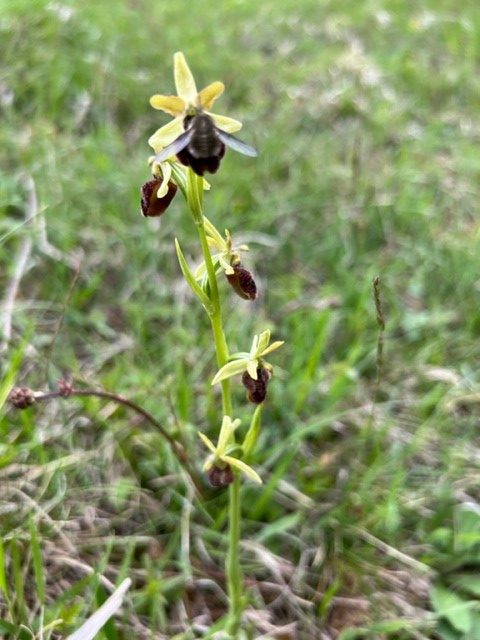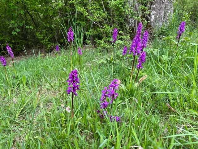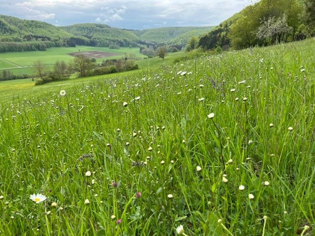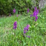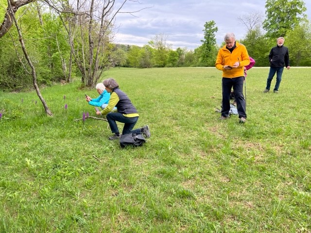 Mit 6 Wanderern starteten wir vom Hexensattel bei Reichenbach im Täle zur Orchideenwanderung, schon nach wenigen Minuten konnten wir 2 Orchideenarten, Spinnenragwurz und Knabenkraut bewundern. Ausserdem war noch der Fruchtstand der Schachbrettblume, ebenfalls Orchideenart, zu erkennen. Über gerade aufblühende Margeritenwiesen, vorbei an Frühlingsenzian, Salomonsiegel, Temaginken, Küchenschellen und Wiesenbutzenstengel erreichten wir das Wasserberghaus und trafen dort auf unseren Schelklinger Mitwanderer, der das Wasserberghaus in der Diretissima erklommen hatte und schon mit einem Kaffee auf uns wartete. Nach der Einkehr wanderten wir über den Haarberggipel mit seinem prächtigen Panoramablick zurück zum Hexensattel.
