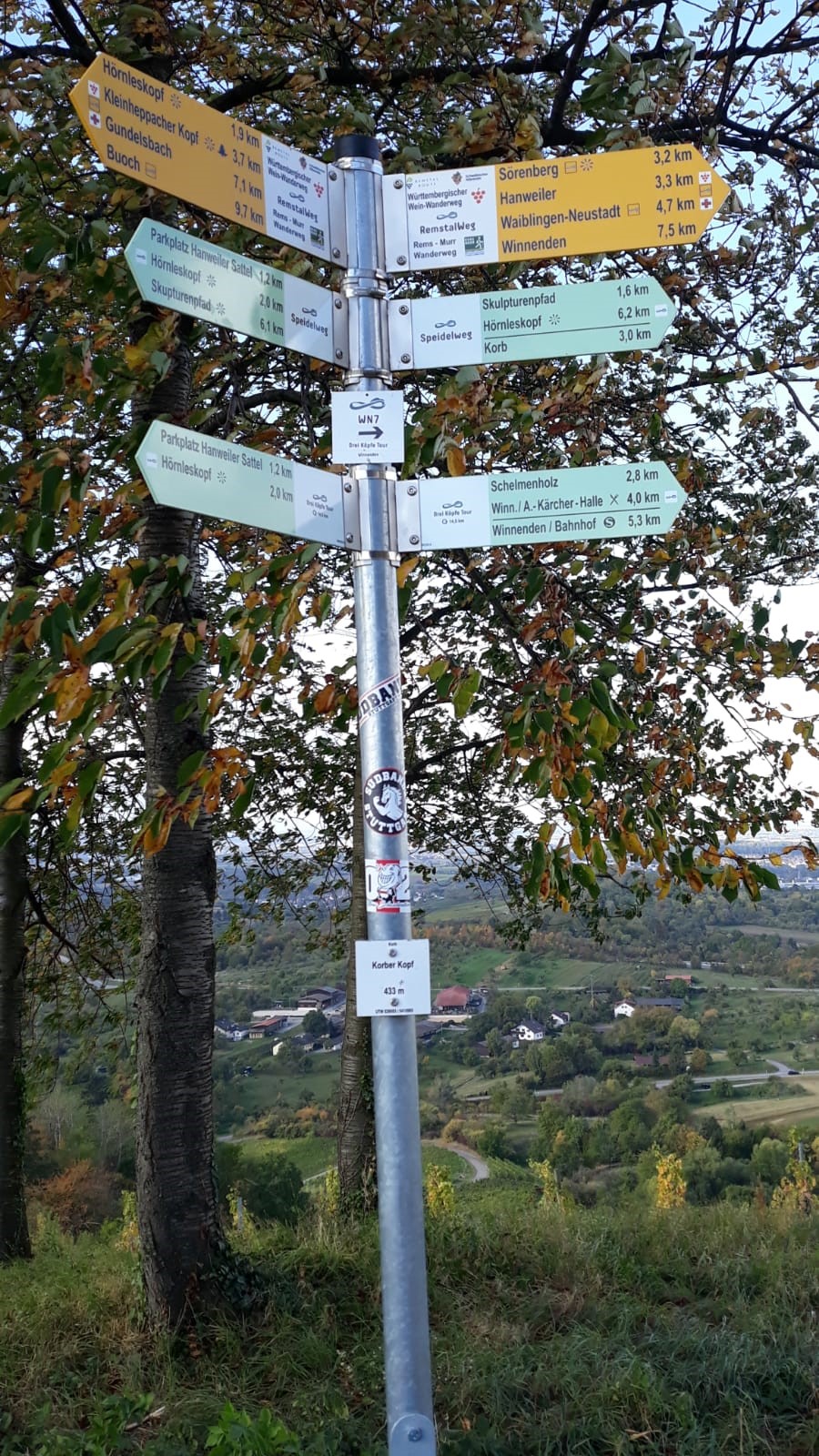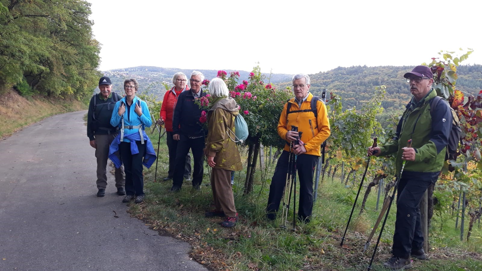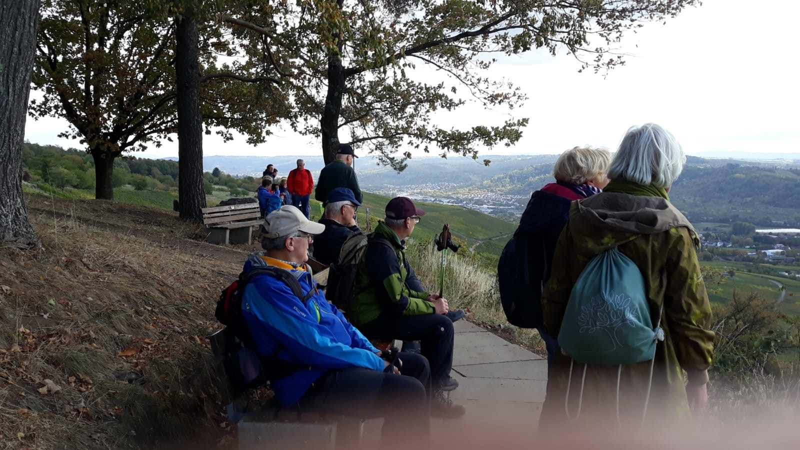 Um 9:15 Uhr traf man sich in der Ortsmitte von Berghülen, am Brunnen. In Fahrgemeinschaften fuhr man ins Remstal, nach Korb. Von dort aus ging es zu Fuß durch die Weinberge, den Wanderweg zum Korber Kopf hinauf. Vom Kopf aus hatten wir eine tolle Aussicht über das Remstal. Anschließend ging es von dort durch den Wald hinab in den Weinort Hanweiler und anschließend wieder bergauf zum Hanweiler Sattel. Dann ging es zum Kleinheppacher Kopf und weiter zum Hörnleskopf. Hier hatten wir Sicht in Richtung Stuttgart, auf Waiblingen, Winnenden und vielen kleinen Ortschaften im Remstal. Nach rund vier Stunden kamen wir wieder bei unseren Autos an und fuhren von dort zurück auf die Alb. In Hohenstadt machten wir halt um im dortigen Gasthaus Sonne einzukehren.