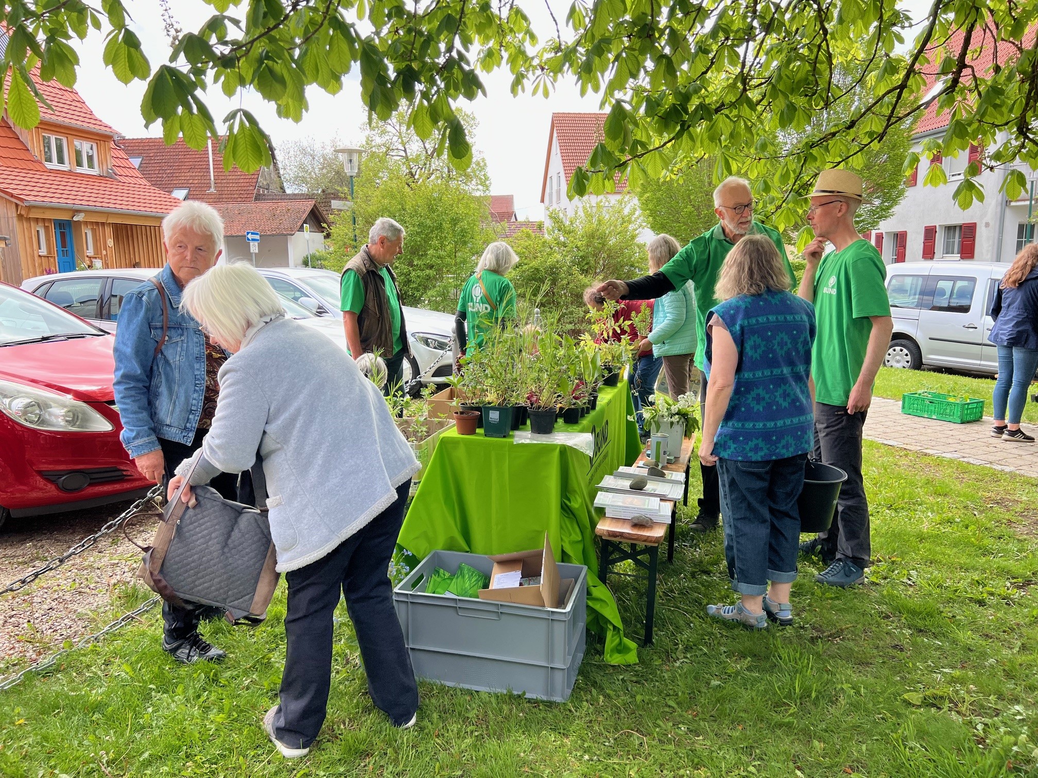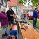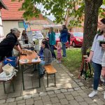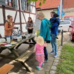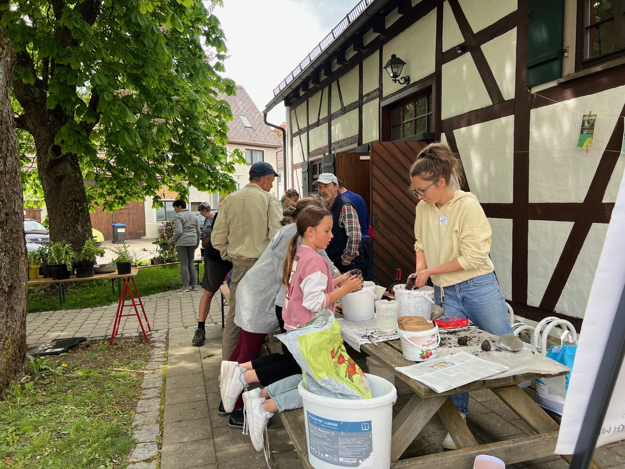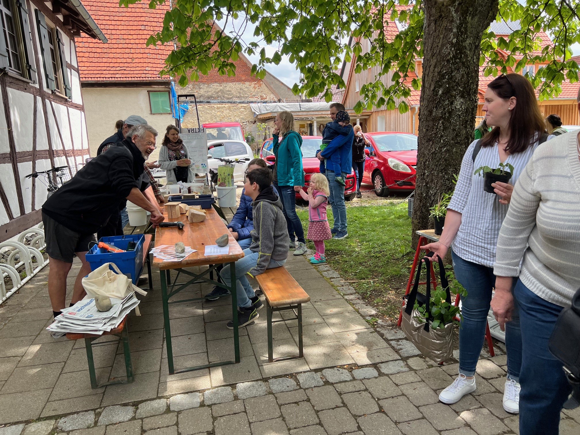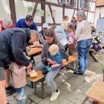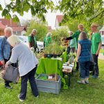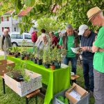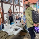 Zusammen mit dem BUND, dem Blauen Wunder eV Blaubeuren und den Landfrauen konnten wir zahlreiche grosse und kleine Besucher auf der Pflanzentauschbörse begrüssen. Es wurde fleissig geteilt, getauscht, getratscht und neue Kontakte geknüpft. Und natürlich wurde gebastelt: gebohrt, gemalt und gestanzt — Samenbollen mit dem Blauen Wunder, Nisthilfen mit dem Albverein und Schmetterlinge mit dem BUND. Die leckeren Kuchen samt Bienenstich von den Backprofis der Landfrauen und des Albvereins waren wie letztes Jahr in kürzester Zeit ausverkauft!