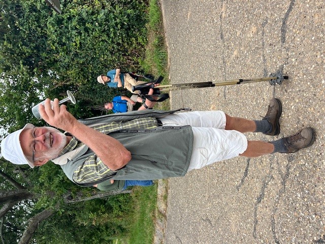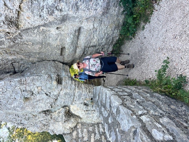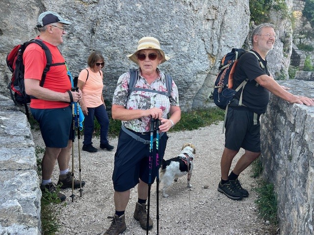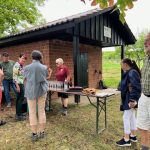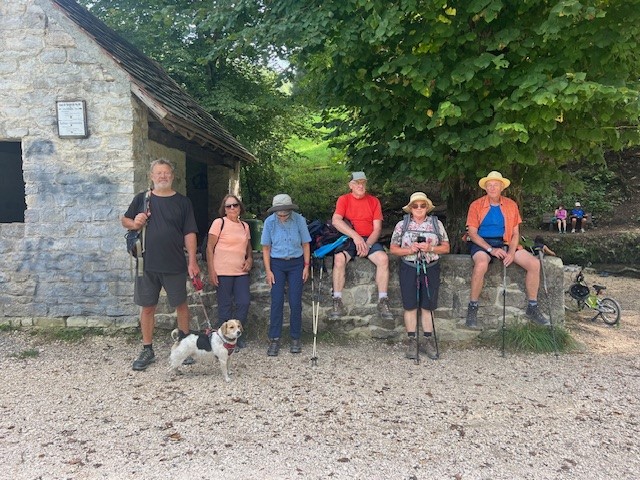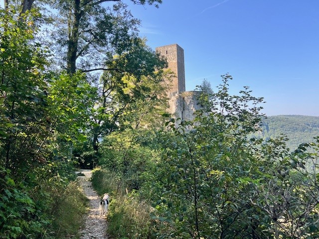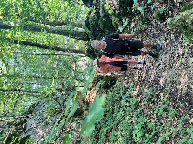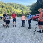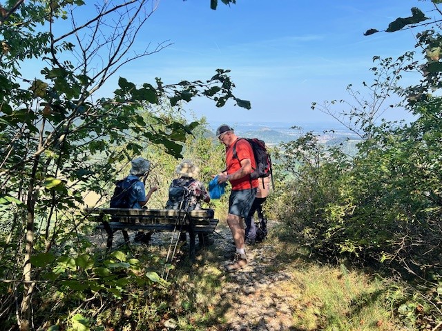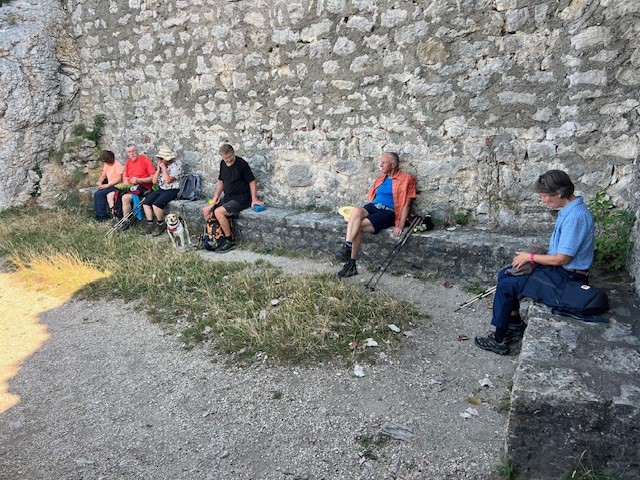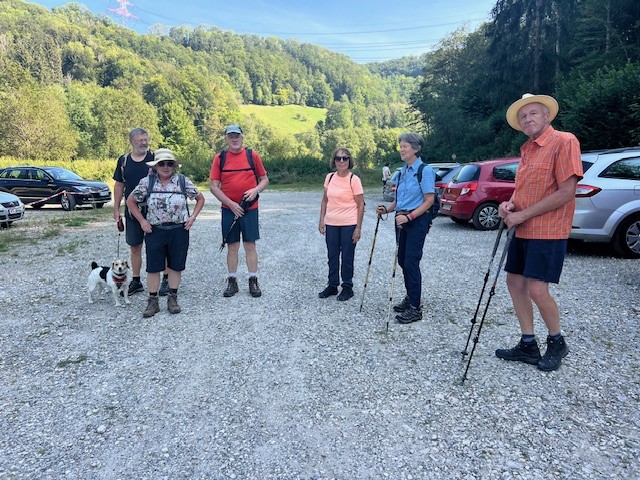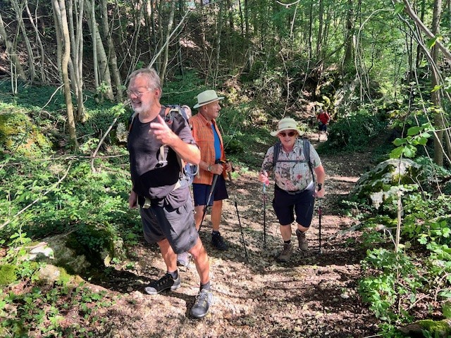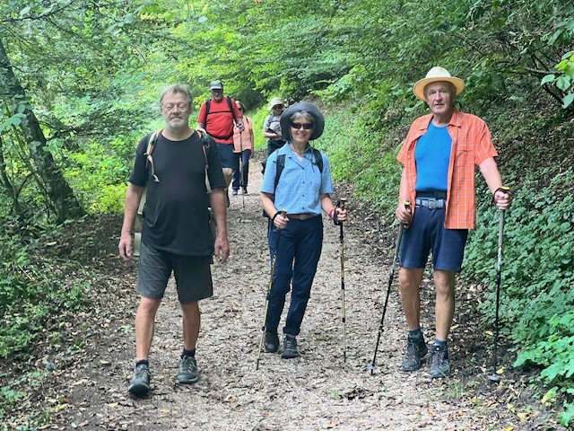 7 Wanderer und Fred machten sich bei schönstem Wetter auf nach Wiesensteig. Nach schweisstreibendem Aufstieg durch einen beeindruckenden Hohlweg hinauf zur Hochfläche der Alb wurde schon bald die Ruine Reussenstein erreicht. Herrliche Blicke entlang des Albtraufs und ins Unterland belohnten die Mühe des Aufstiegs! Nach der Rucksackversper ging es übers Bahnhöfle und dann in grossem Bogen durch den schattigen Wald hinunter zum Ursprung der Fils, wo schon einige Wanderer die Füsse in der Quelle kühlten. Die anschließende Einkehr bei Wurstsalat, Eis und Kuchen beendeten eine gelungene Wanderung über 14 Kilometer! Danke an Wanderführerin Roswitha für die tolle Tour.