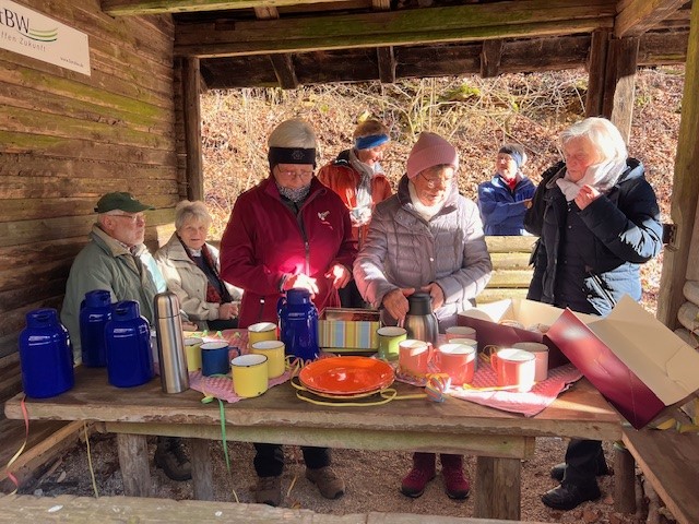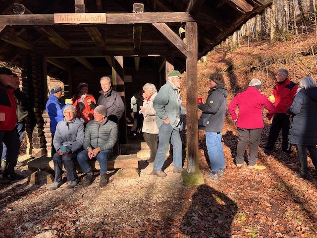 Bei herrlichstem Sonnenschein wurde das Wanderjahr 2025 von 21 Teilnehmern eingeläutet. Mit Wanderführer Jörg ging es vom Backhaus hinunter zur Pfefferhaldehütte. Dort wartete bereits der Schultes mit der angekündigten Überraschung: Faschingskrapfen, Stollen, Apfelbrot, Nusskuchen und Punsch. Nach dieser leckeren Stärkung, einer gemütlichen Rast und viel Lachen und Schwätzen führte uns ein schmaler Weg nach Osten wieder hinauf auf die Albhochfläche. Super Auftakt zum Wanderjahr 2025, möge uns das Wetter und die vielen Teilnehmer so erhalten bleiben…♥