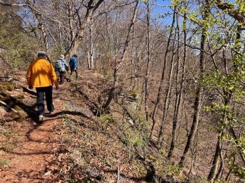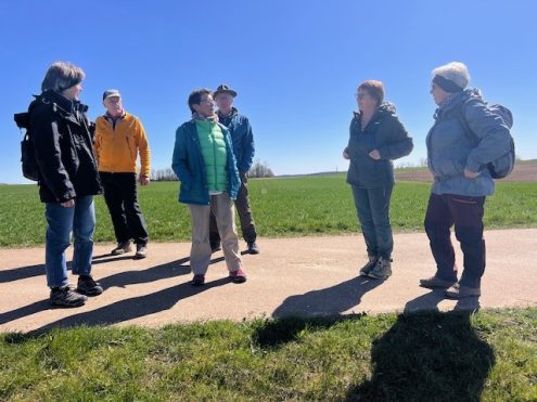 Blauer Himmel täuschte ein bißchen über den eiskalten Ostwind hinweg – doch das hielt 7 Wanderer aus Seißen und Blaubeuren nicht ab von der Wandertour über dem Filstal. Über Kahlenstein, Geiselstein und Tirolerfels mit herrlichen Ausblicken und bunter Frühlingsblütenpracht erreichte die Gruppe das Ostlandkreuz auf der Schildwacht. Beeindruckend der Tiefblick hinab nach Geislingen ebenso wie der Weitblick nach Norden zum Hohenstaufen! Im gut besuchten Geiselsteinhaus hatten wir Glück — jeder erwischte  noch etwas zum Essen, den letzten Wurstsalat, den letzten Kuchen, die letzte Sulz — grad lustig wars. Nach gut 8 km ging wiedermal ein ausgefüllter und gelungener  Wandernachmittag zu Ende. Danke an die Wanderführerin Roswitha für die schöne Tour.