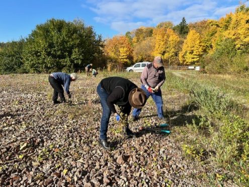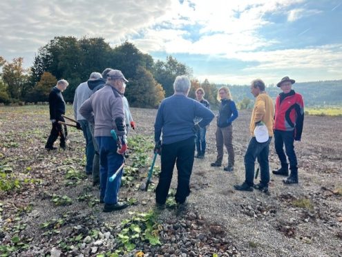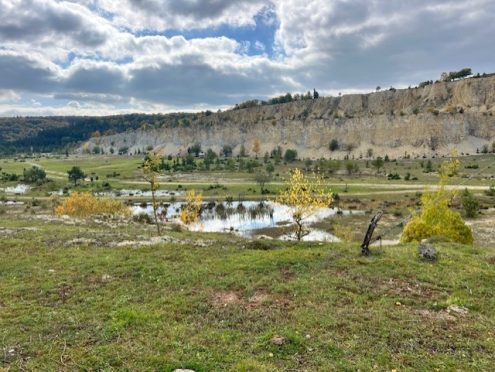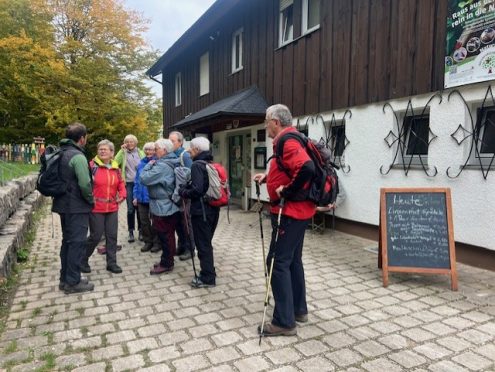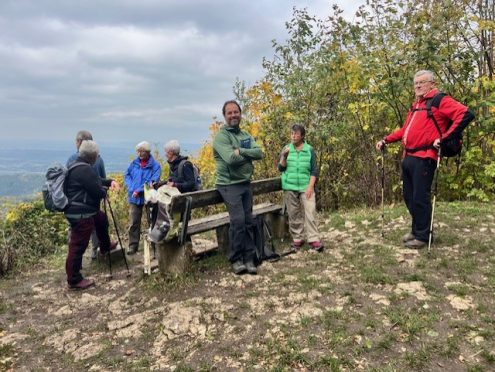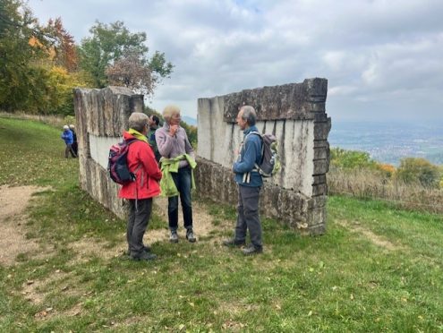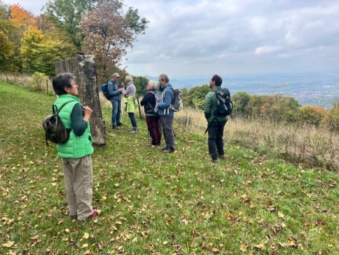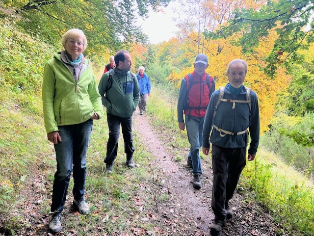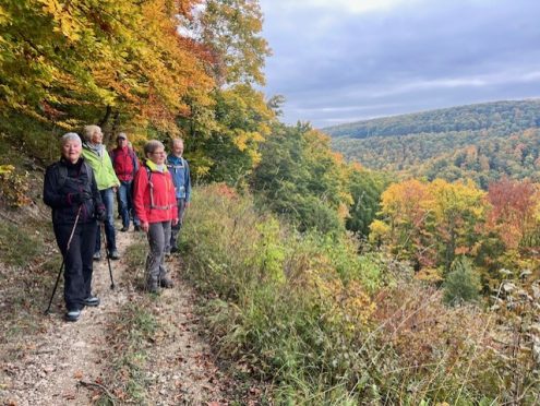 11 Wanderer machten sich bei prächtigster Herbststimmung auf zum Trauf bei Gruibingen. Über die Wacholderheiden am Hillenwang und die Wolfsbühlsteige ging es hinauf an die Traufkante zu Jahrhunderstein und Flieger-Gedenktafel. Weit ins Unterland und zur Limburg und Teck konnte der Blick trotz einiger Wolken schweifen.