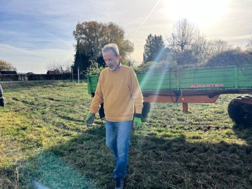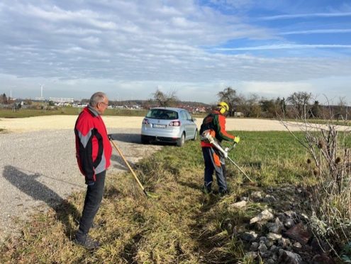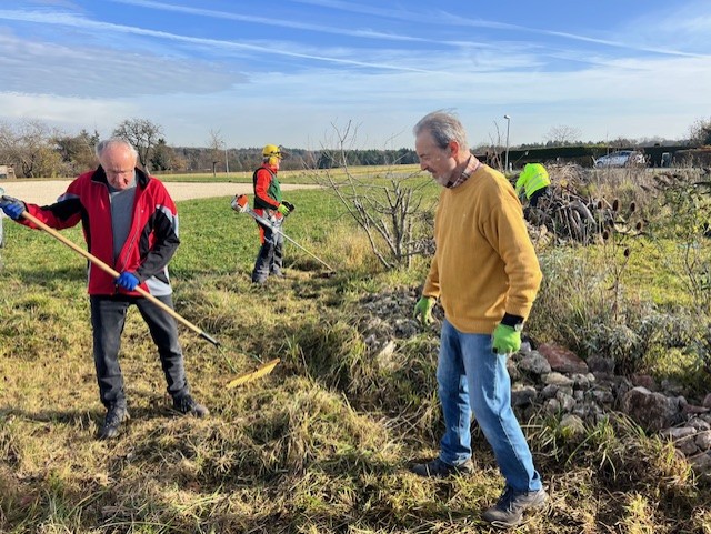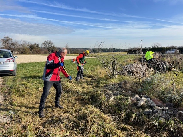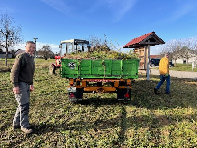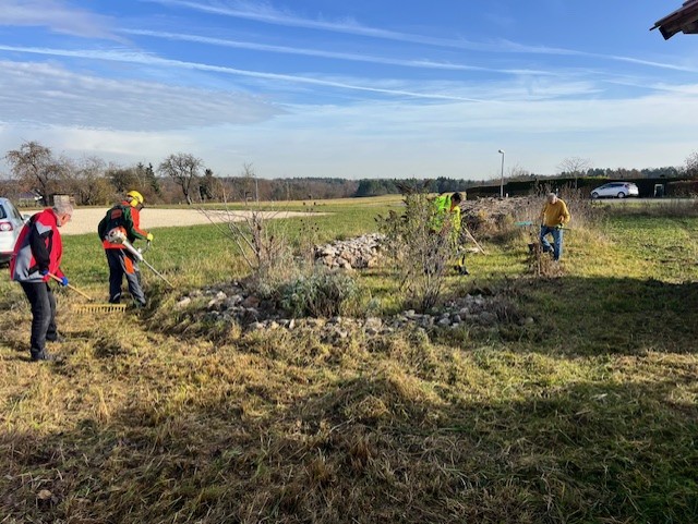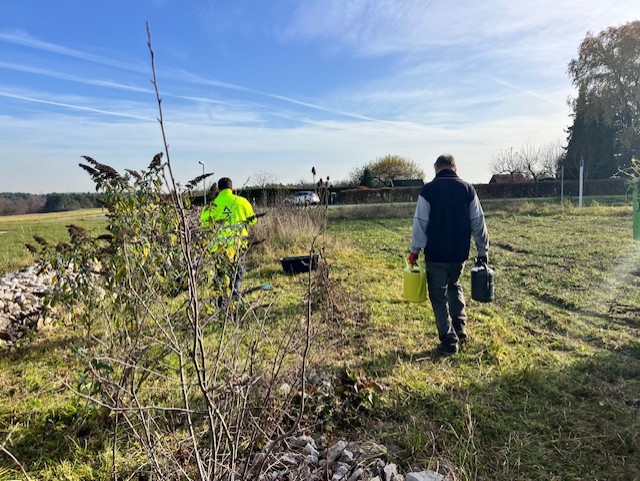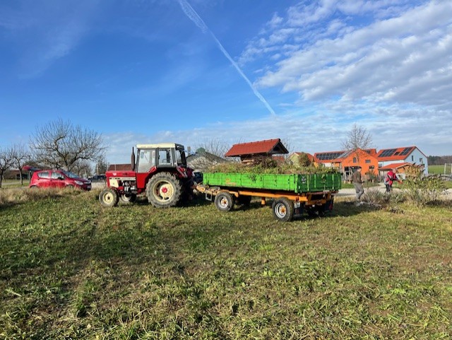 Der Spätherbst ist da, die Wildbienen haben ihre Eier in den Brutröhren abgelegt und der Winter kann kommen. Daher wird die Weide gemäht, Karden und andere senkrechte Hohlstrukturen bleiben stehen wegen der potentiell erfolgten Eiablage.