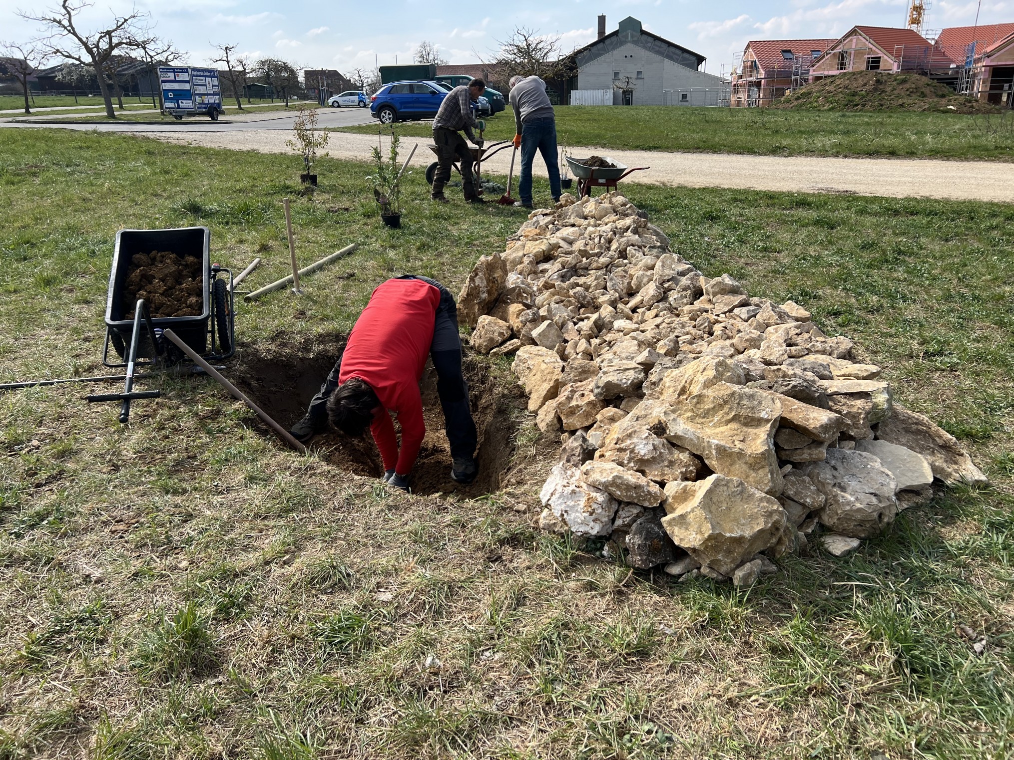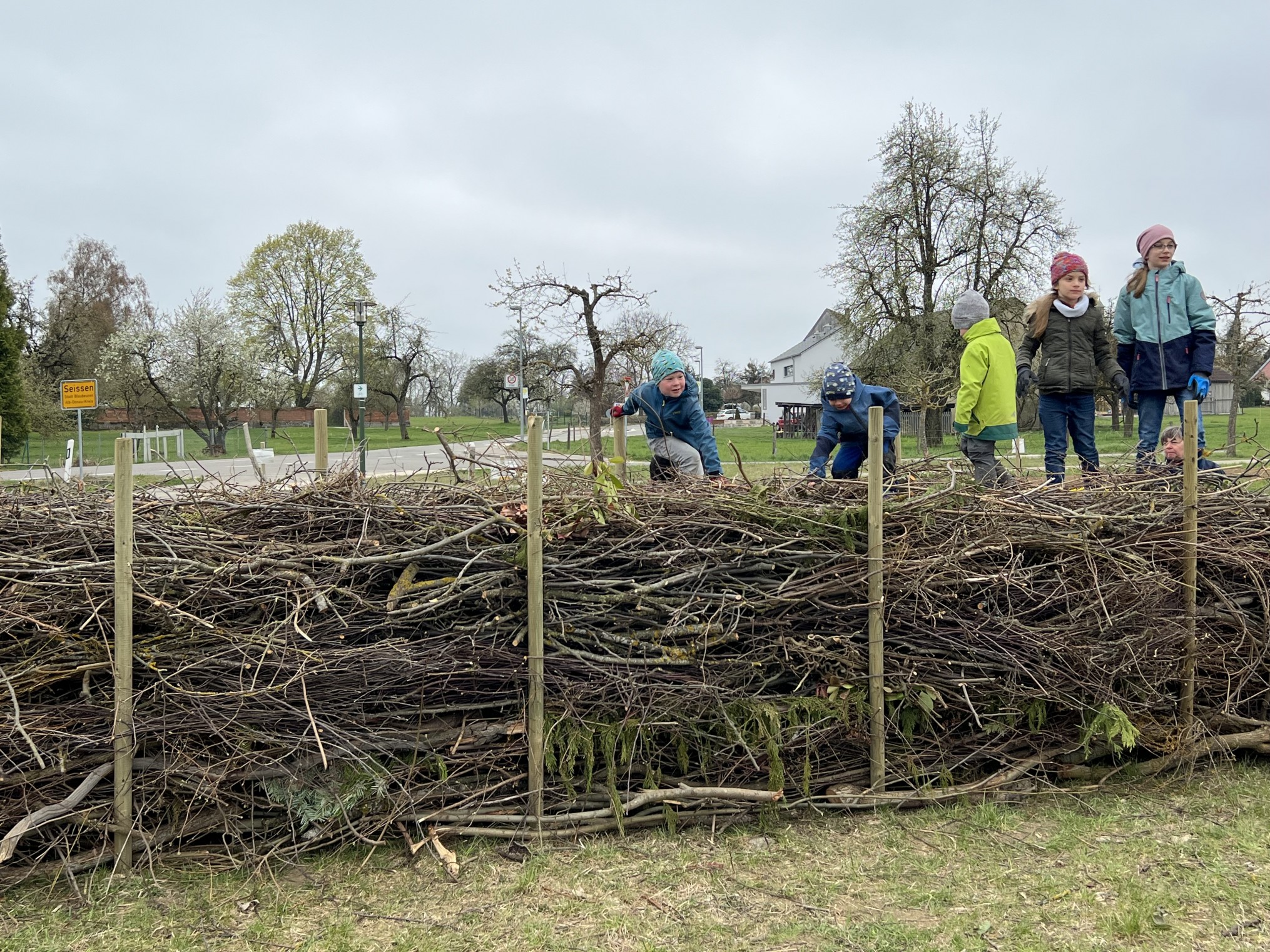Seißen hat nach einer konzertierten Aktion des SAV Pflegetrupps, der OG Seißen, der Kinderkirche Seißen, der OG Bermaringen und auch der Bude Seißen eine Wildbienenweide mit verschiedenen Elementen wie Totholzhecke, Lesesteinmauer, Blühwiesen, Sandarium, Staudenbeet etc am Ortseingang in der Nähe der Mehrzweckhalle angelegt. Danke an alle fleissigen Helfer, die trotz Kälte und Wind so toll dazu beigetragen haben, dieses Projekt real werden zu lassen.
