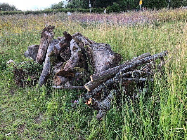 — Und tatsächlich, Wildbienen und Schmetterlinge halten Einzug in ihre Weiden! Hummeln und Erdwespen haben bereits viele Nester gebaut, Wildbienen legen Brutröhren im Sandarium an und auch das erst neulich ausgebrachte Totholz hat schon Insekten angelockt!
