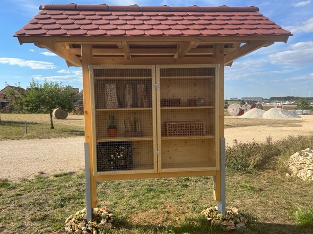 Demnächst wird noch das Erklärschild angebracht und das Bienenhotel komfortabel möbliert für die Gäste!