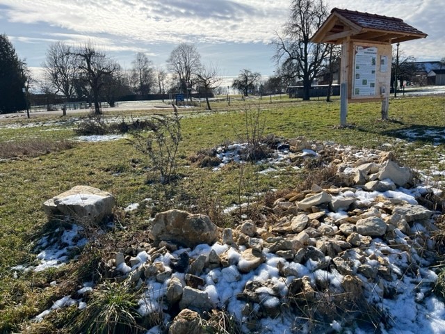 Es ist Januar, alles ruht still, wirkt erstarrt und irgendwie leblos. Aber da ist unterschiedlichstes Leben in den verschiedenen Bereichen. Was wohl alles in den alten Hohlstängeln und in den Totholzhäufen schläft und auf den Frühling wartet? Wer wohl alles Winterruhe oder Winterschlaf in der Benjeshecke hält? Welche Tiere wohl alle im Steinriegel ein Zuhause für den Winter gefunden haben?